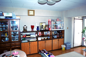 天井に梁があっても、オーダー家具なら 家具を左の写真のように梁欠きで施工できます。 |